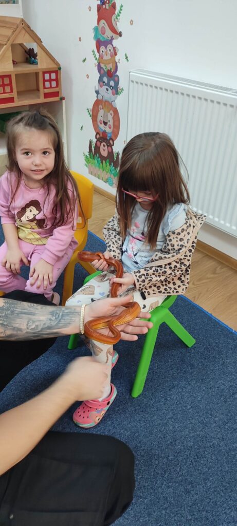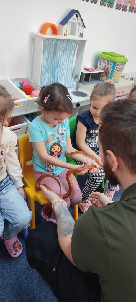 Copiii au ocazia să descopere lumea fascinantă a acestor viețuitoare, să învețe despre obiceiurile și habitatul lor, dar și despre cum trebuie îngrijite. Activitatea a fost interactivă, permițându-le micuților să pună întrebări, să observe îndeaproape animalele și în condiții de siguranță, chiar să le atingă.